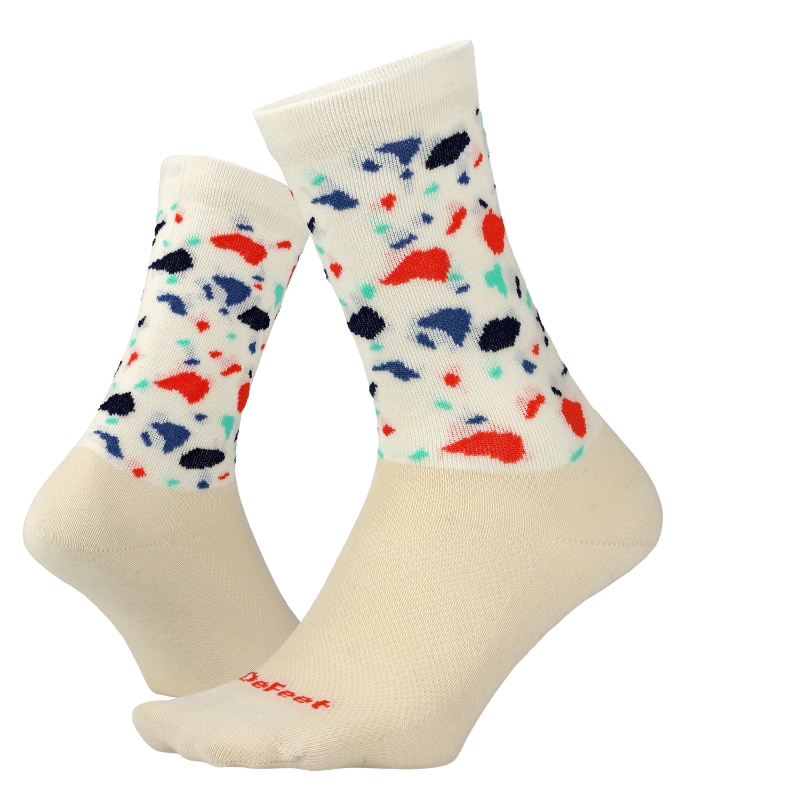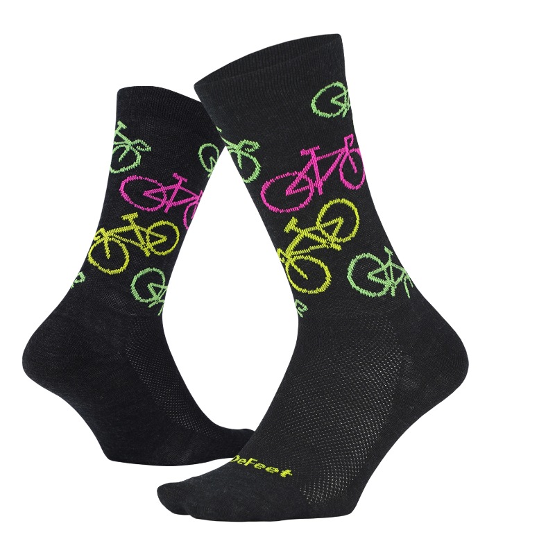 かつてのサイクリングソックスは、白色で伸縮性に乏しく、傷みやすい表地とナイロンの裏地で編まれた“使い捨て”のものでした。創業者のショーン・クーパーは1992年、従来のサイクリングソックスの構造を裏返しにした Aireator(AI)ソックスを編み出しました。靴下の外側には耐久性と強度を高めるためにナイロンを、足裏には快適性を高めるために柔らかい繊維を、そして甲の部分には肌から湿気を取り除くために画期的なメッシュ編みを用いたのです。耐久性、強度、快適性を兼ね備えたAireatorモデルから、DeFeetの歴史は始まりました。